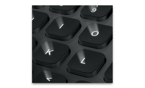 • Type comfortably thanks to the unique Logitech keycap design. The concave key surface complements the natural profile of your fingertips and helps you better locate each key for an improved typing experience. The key edges are also softly rounded so your fingertips glide smoothly from key to key.