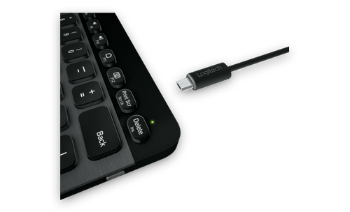 • Forget about having to change batteries. With USB rechargability, you’ll never run out of power. Easily top up your keyboard with the convenient USB cable and continue to work. You’ll enjoy between 10 days* and up to a year of power, depending on the intensity of illumination and time spent typing.